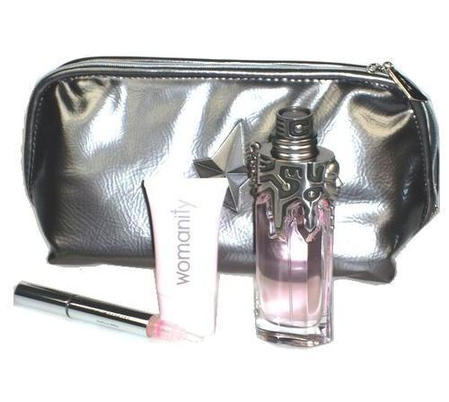 Thierry Mugler - Womanity - dámský EdP sada - EdP 50ml naplnitelný, 30ml tělové mléko, 2ml lip balzám, kosmetická taška